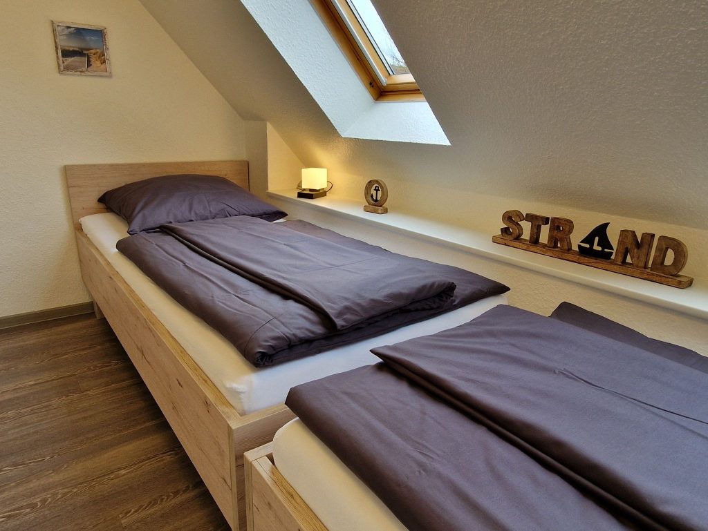 Das gemütliche Schlafzimmer ist mit zwei Einzelbetten ausgestattet und ideal für Familienmitglieder und Freunde die gemeinsam Reisen. Der große Kleiderschrank bietet genügend Stauraum für eure persönlichen Dinge.